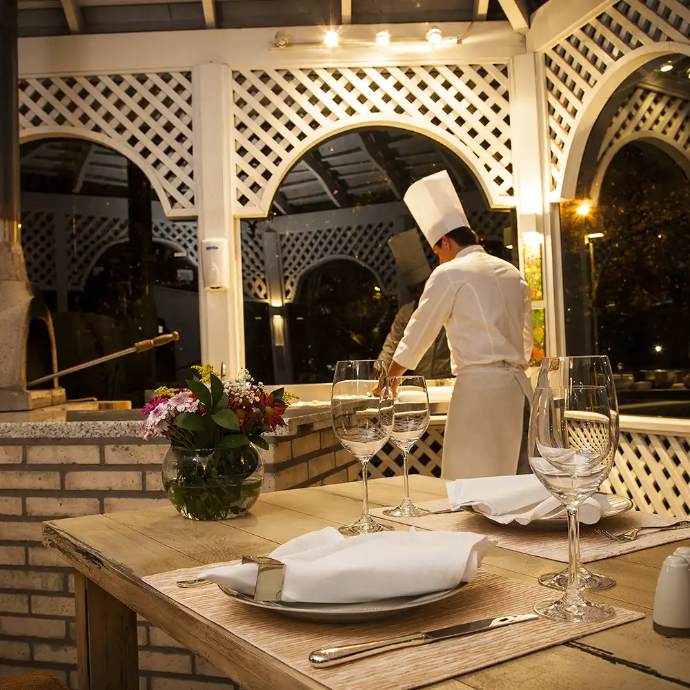 Escolha o ambiente que melhor combina com o seu momento. Na Boulangerie, a experiência é conduzida por um pizzaiolo exclusivo, com as pizzas assadas em forno a lenha diante do hóspede, criando um momento interativo e memorável. No Restaurante Primrose, as pizzas são servidas à mesa, em nosso elegante salão ou nas salas privativas Madre Pérolas, ideais para encontros mais reservados.